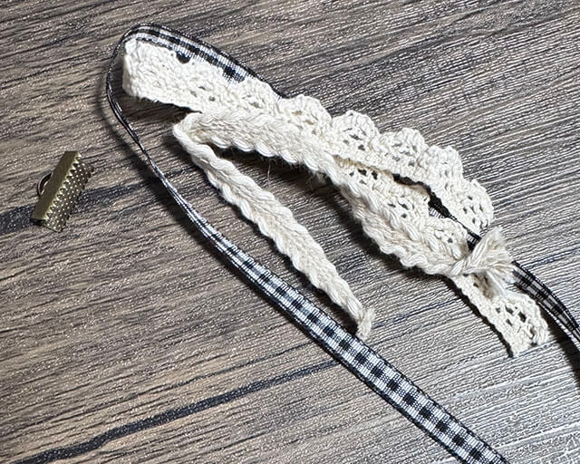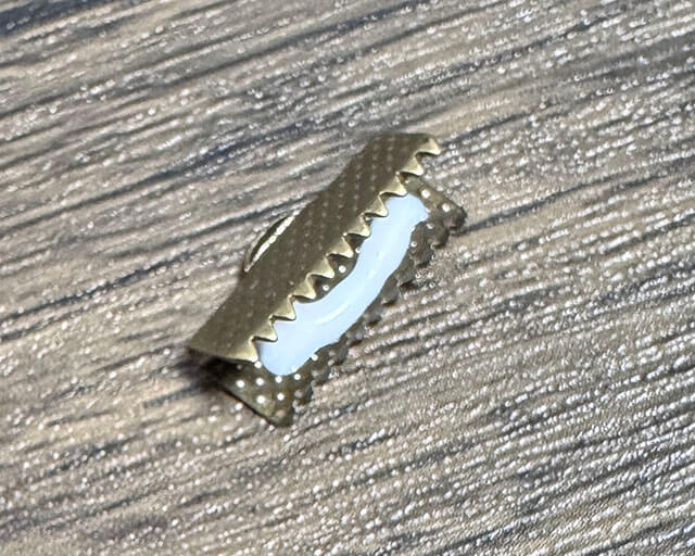 留め具の中にボンドをつけて、リボンを入れるだけです。