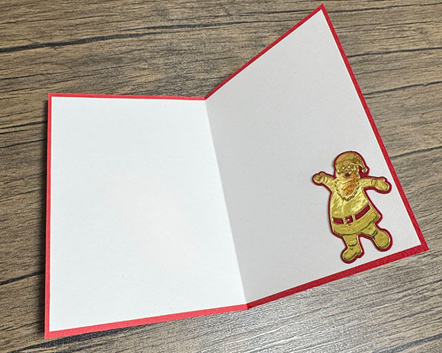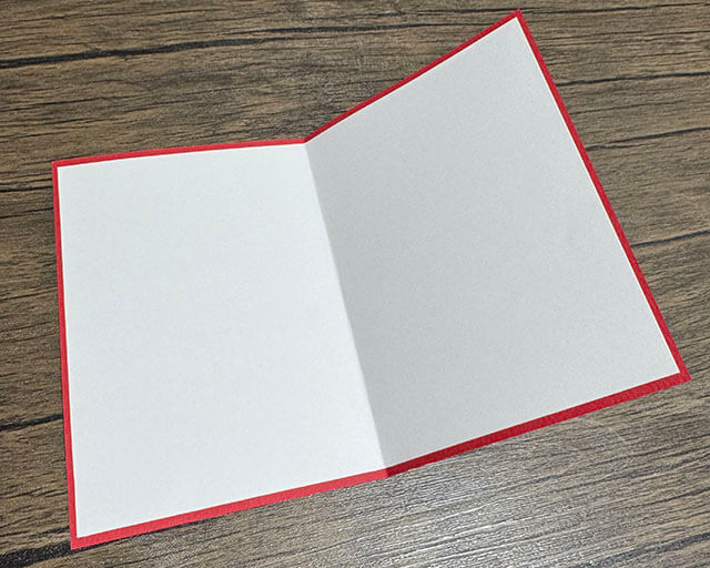赤いペーパーはA5サイズにカットしました。折ると約148mm×105mmになります。