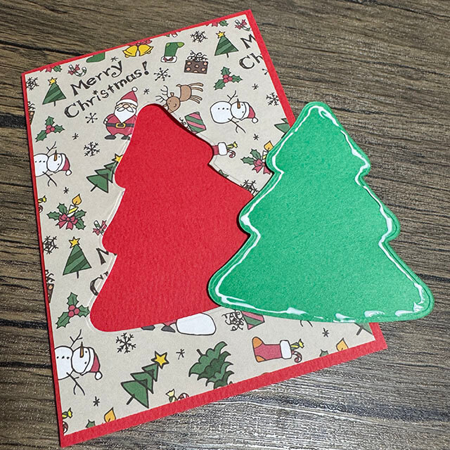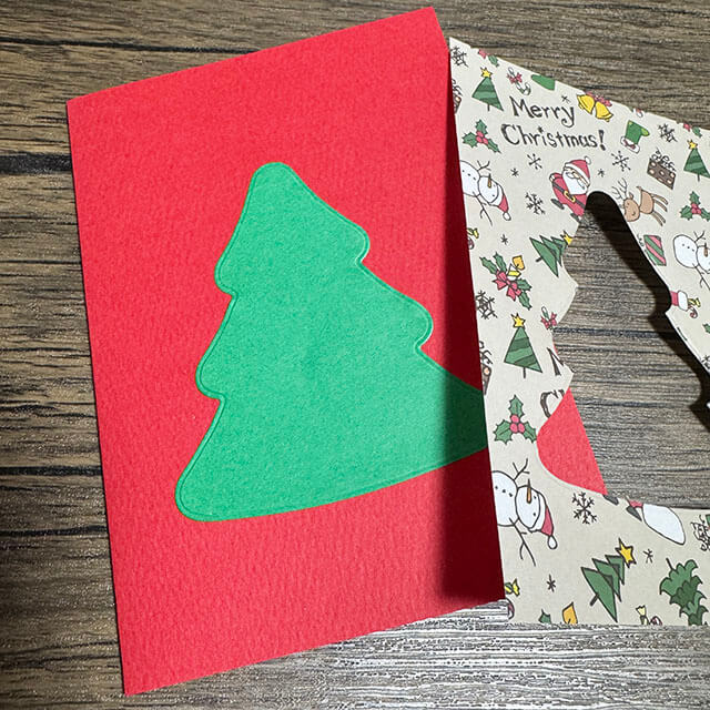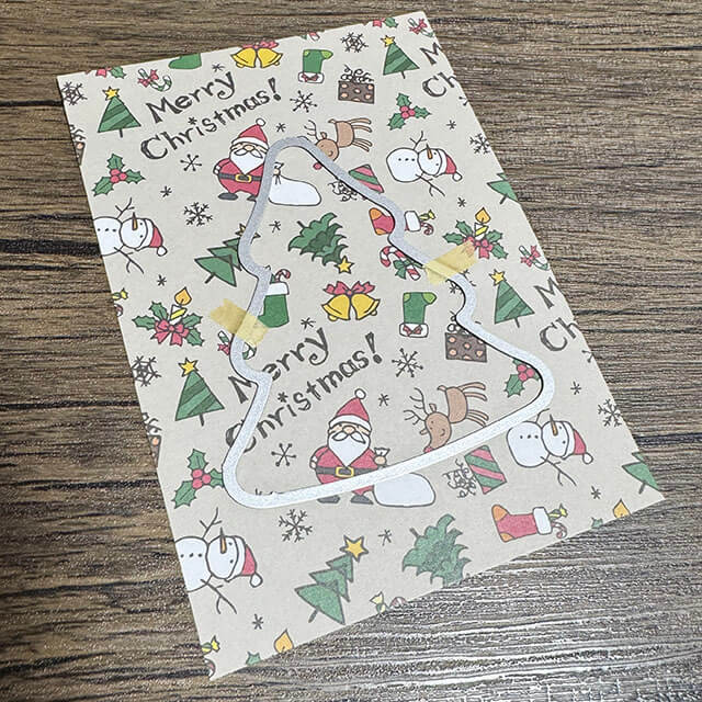 クリスマス柄のペーパーをガイドにしてツリーのみ貼りましょう
