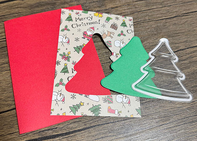 デザインペーパーの真ん中をツリーダイで切り抜きます。