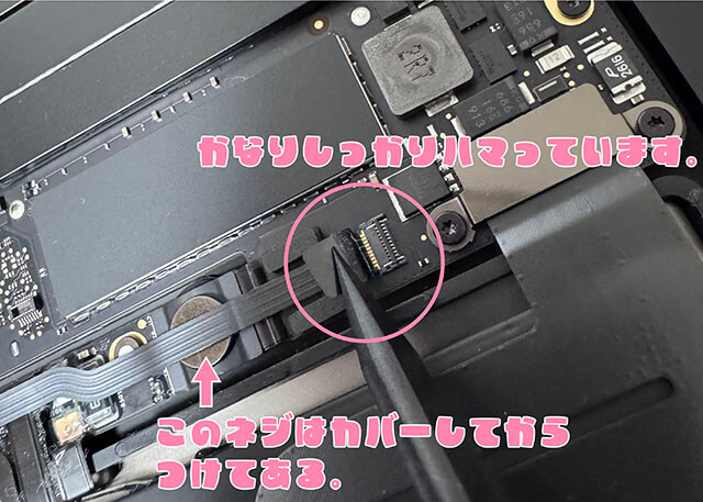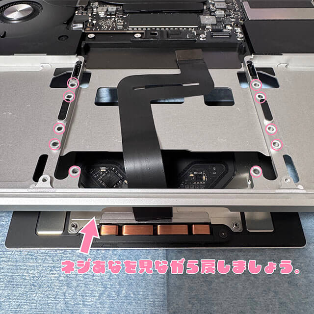コネクターをつけて、2カ所のネジをしめて、トラックパッドをつます。