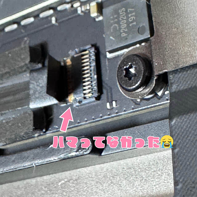 原因① リボンケーブルがハマっていませんでした
