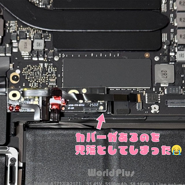 カバーの存在を無視して、バッテリーボードを上に乗せて無理やりネジをしめてしまいました。