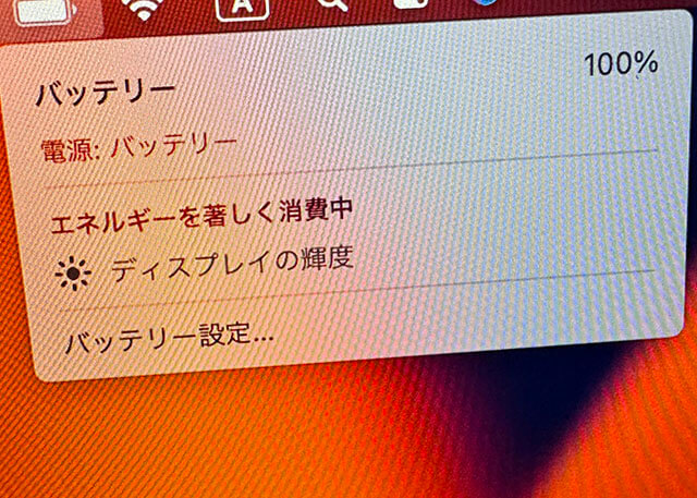 確認すると、バッテリーが100%になりました。