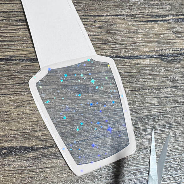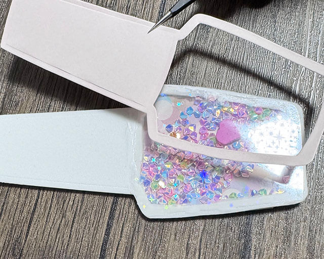 先ほど、カットしたキラキラフィルムを上から丁寧に取り付けよう。