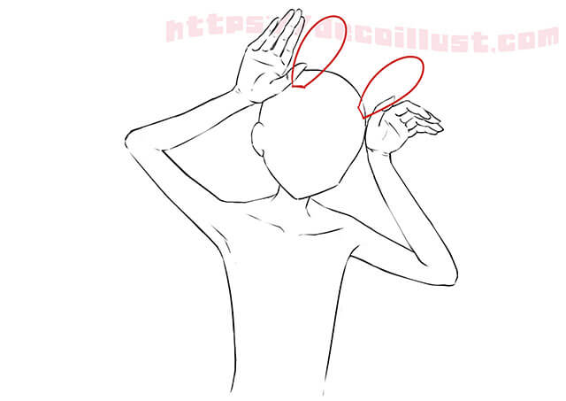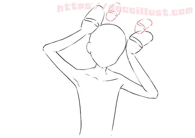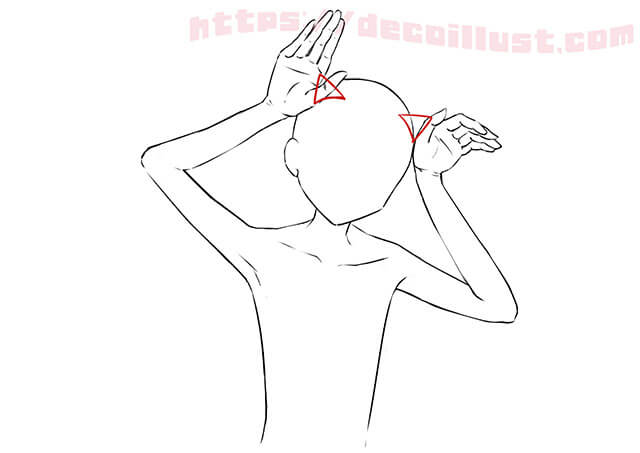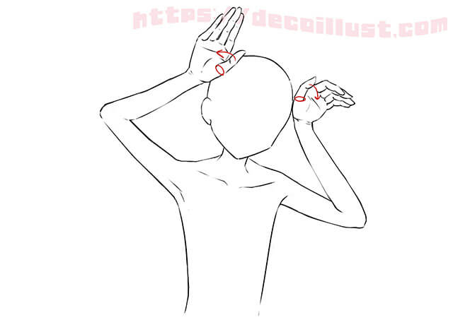 頭の上で手を「ねこ耳&うさ耳みたいにするポーズ」の手の描き方がわからないということで、リクエストに応えてみました。