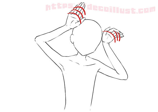 指はおうぎ状についているイメージで、一本づつ描き足していこう。