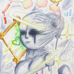 - 少し横を向いている顔を描く課題です。とても可愛い女の子を描くことができましたね!!背景にも色を塗っていて◎
