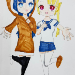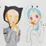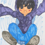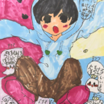 - いつも描かないようなポーズに挑戦していて◎背景も頑張って塗っていましたね♪