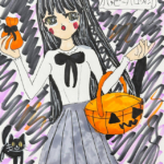 - ハロウィンをテーマにした課題です。ナースのコスプレをした女の子が血まみれですね。ホラー感が出ていて◎新たな世界観に挑戦していますね(^^)