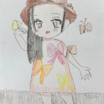 - 自分で考えたオリジナルの洋服が可愛いですね♪フリルや小物のバックがよく描けていて◎