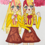 - パッと見て、可愛い!!と思った作品です。仲良しな感じが伝わってきますね。パステルっぽい色彩と女の子の可愛いイラストがバッチリです♪