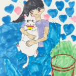 - コピックをたくさん練習していましたね。同系色でまとめられているシンプルな作品です。ワンちゃんの色のムラが、毛のふわふわ感につながっていて◎