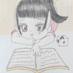 - かなり丁寧に塗られていて◎いつもより繊細な筆のタッチですね!!背景に図書室の看板を描き足していて◎