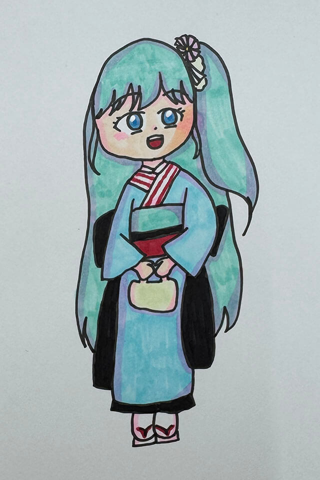 - 瞳の色と浴衣の色を合わせることで、作品の色合いがまとまっていて◎