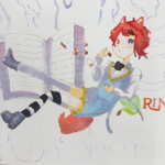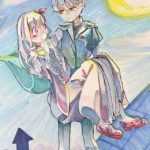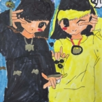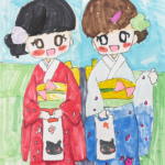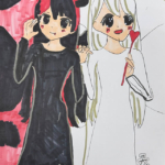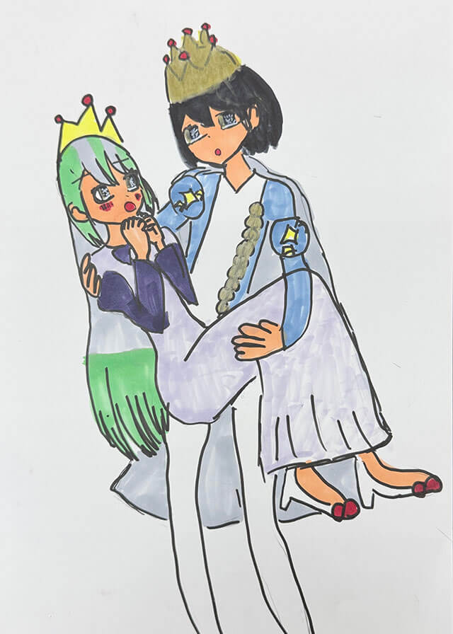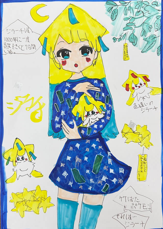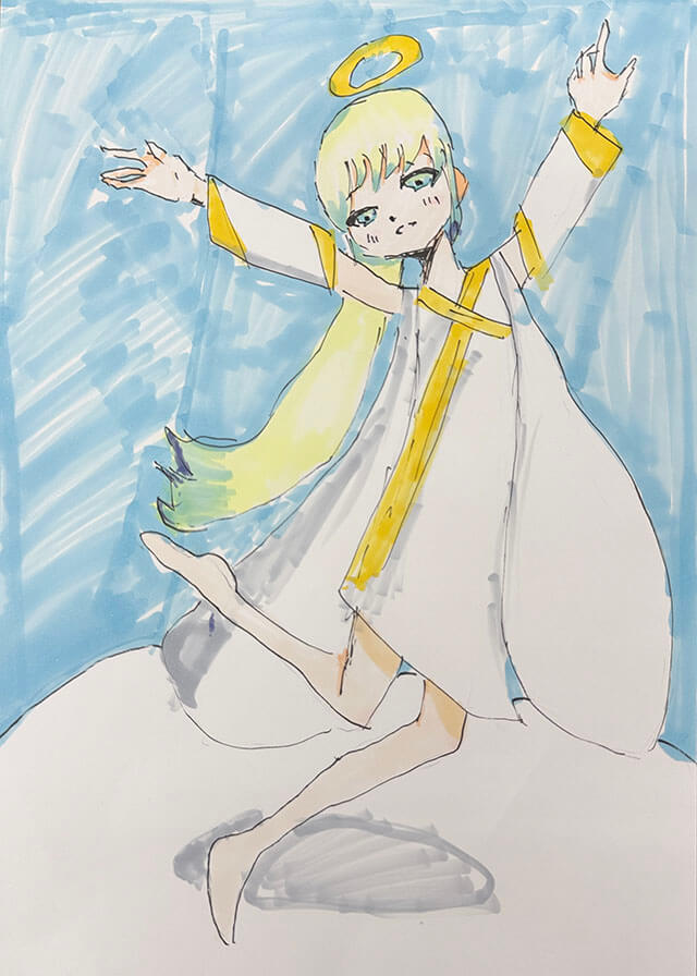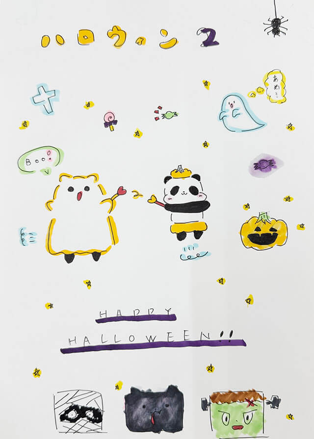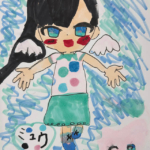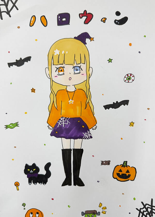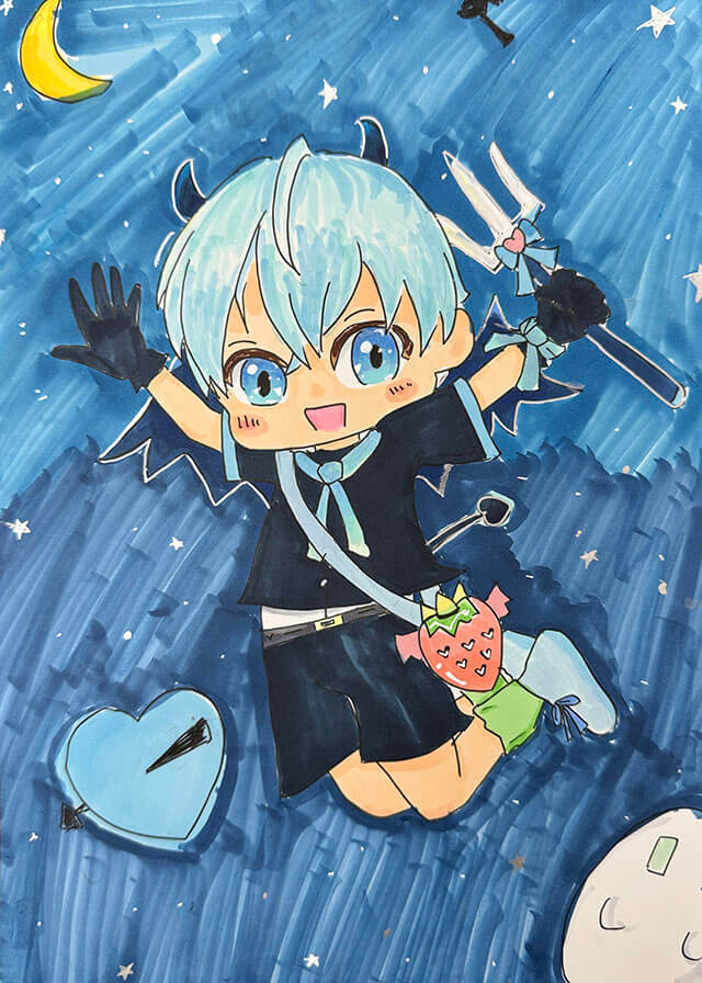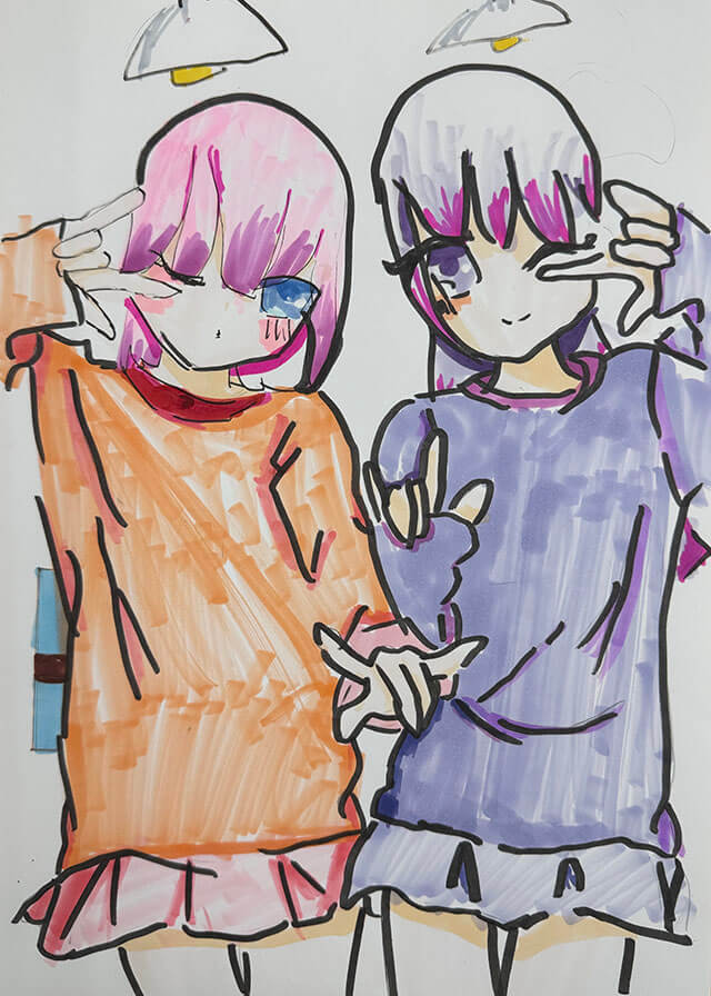 - いつも描かないようなポーズに挑戦していて◎背景も頑張って塗っていましたね♪