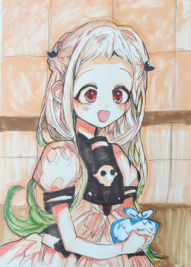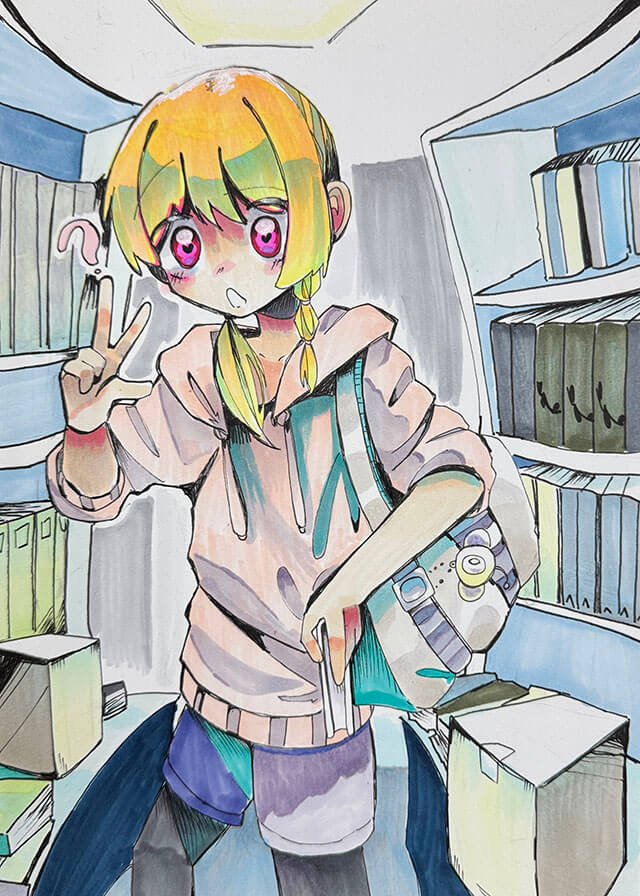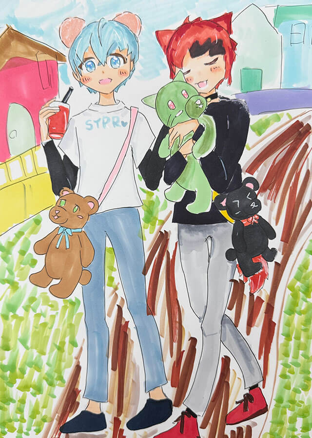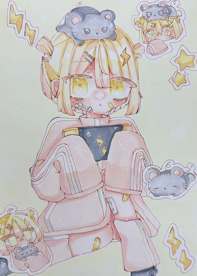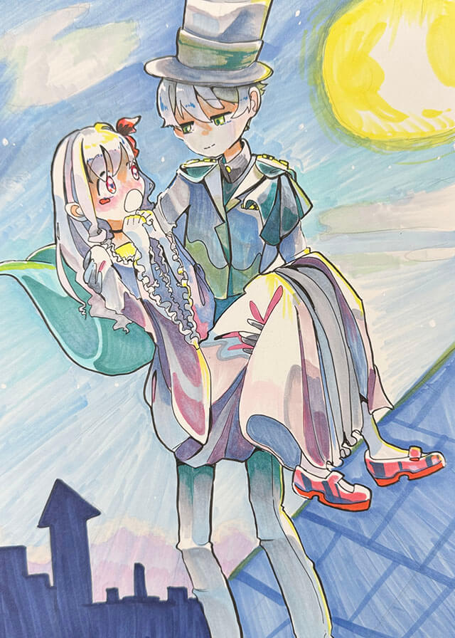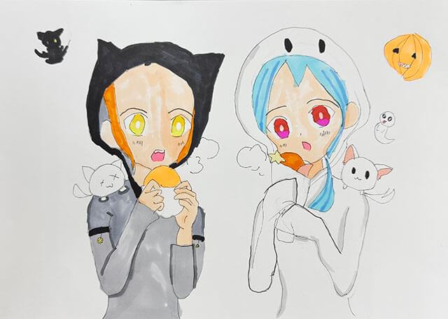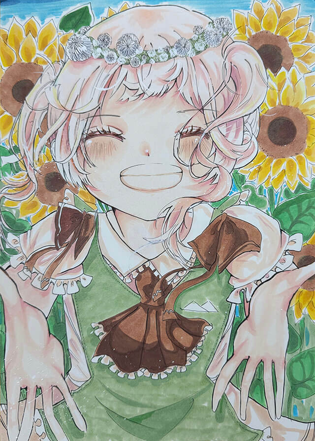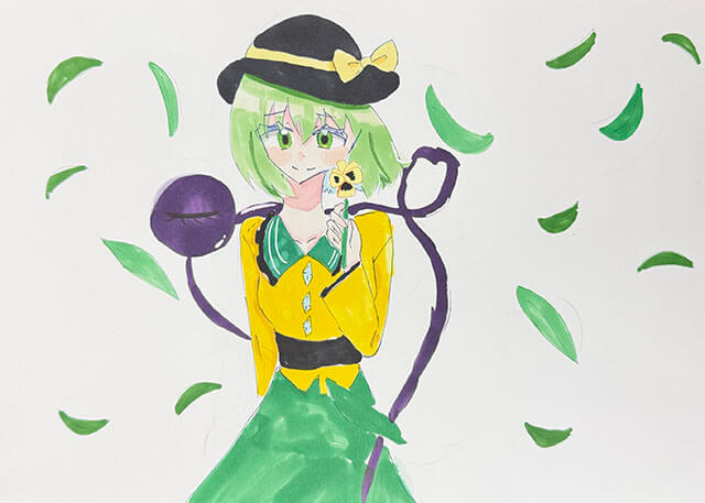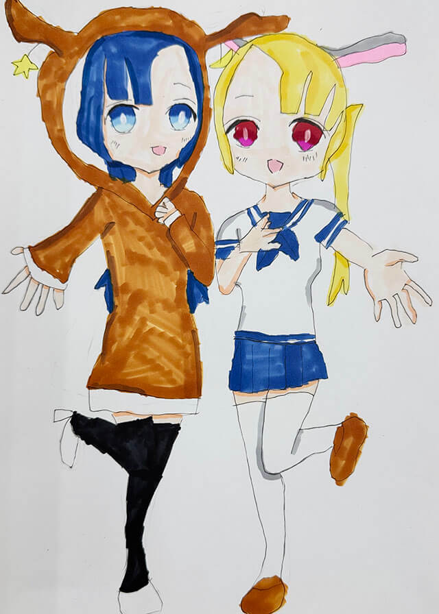 - コピックに色鉛筆を重ねていて可愛いですね。とても楽しい雰囲気が伝わってきます♪