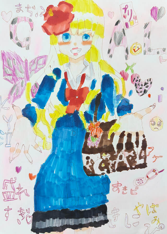 - 自分で考えたオリジナルの洋服が可愛いですね♪フリルや小物のバックがよく描けていて◎