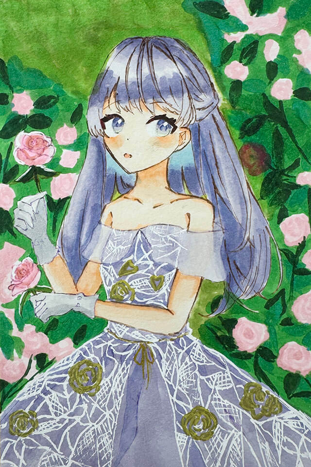 - 淡い紫色で統一された作品ですね。薄い色で表現するのは難しかったと思います。チャレンジ精神◎