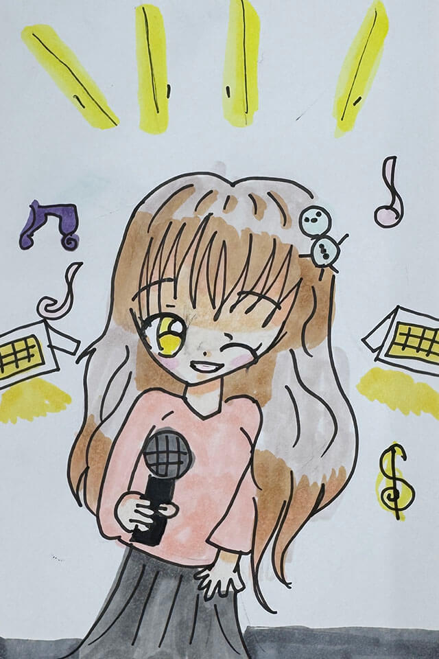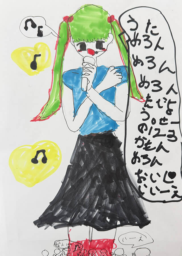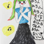 - 背景に女の子の歌声を表現していて◎どんな歌を歌っているのでしょうか?全身を紙に大きく書いていてgood!!