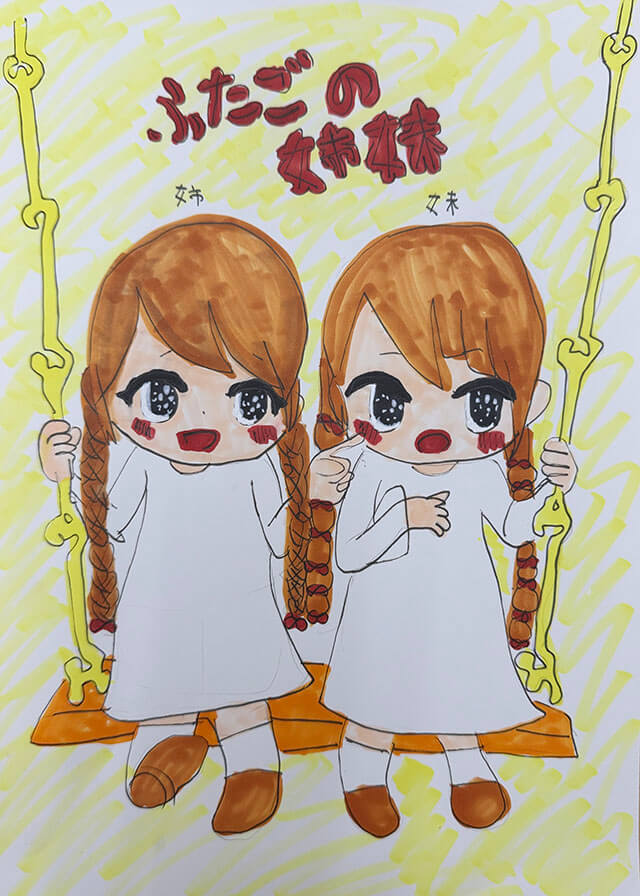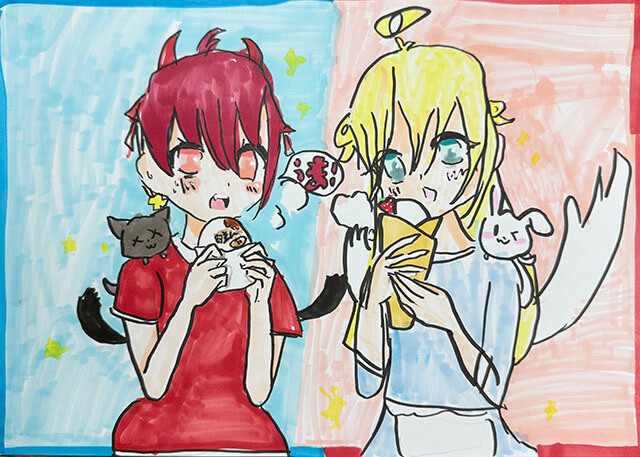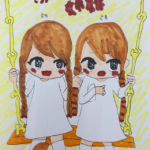 - パッと見て、可愛い!!と思った作品です。仲良しな感じが伝わってきますね。パステルっぽい色彩と女の子の可愛いイラストがバッチリです♪