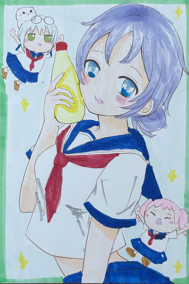 - 水着を着た女の子が目を惹く作品ですね。背景もしっかり描いているので、どこにいるかも分かりやすいですね。手前と奥の距離感が出ていて◎