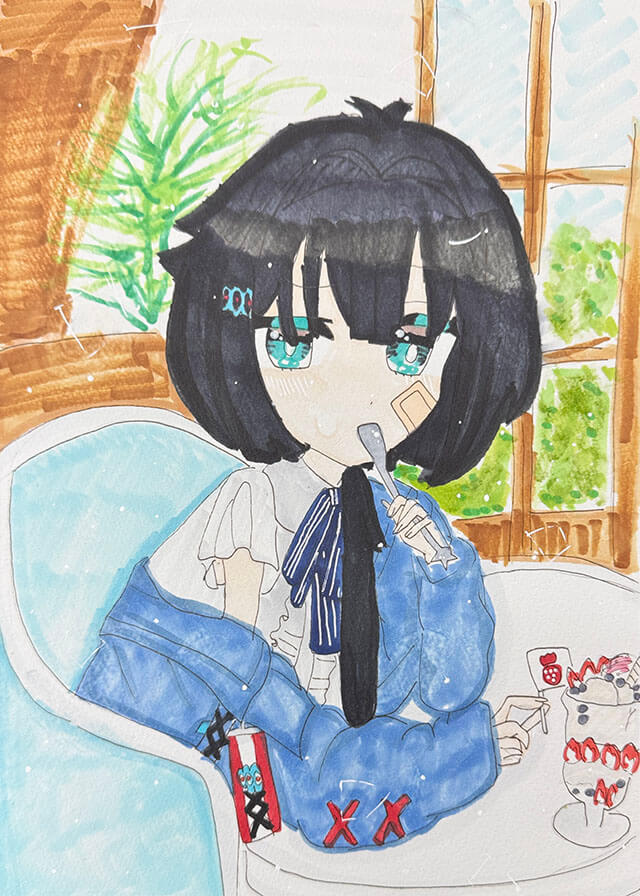 - 背景を工夫していて◎カラーも綺麗に塗れていますね。