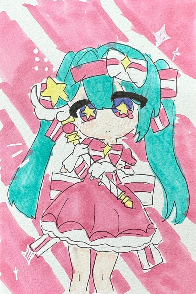 - シンプルに塗られていて◎周りに星を描いてアレンジしているところが良いですね♪線画を生かした塗り方に優しさを感じます。