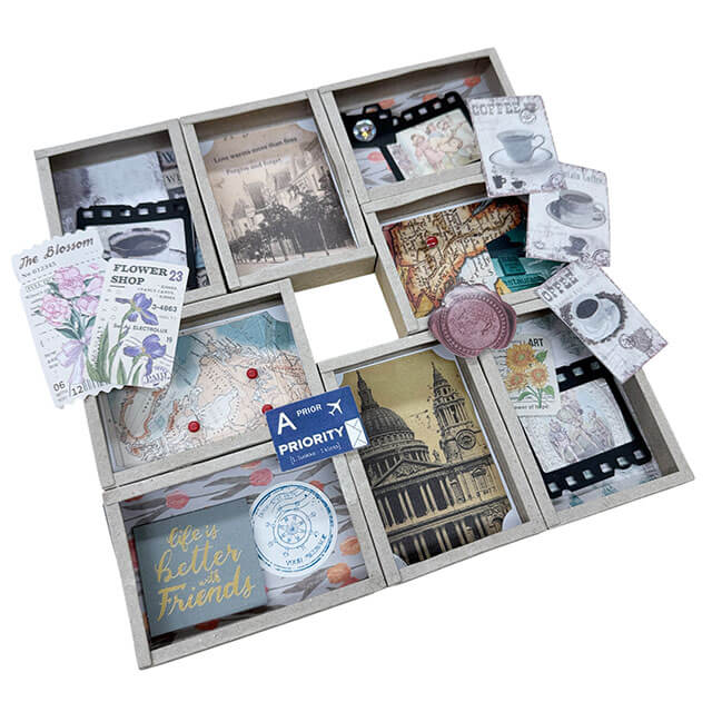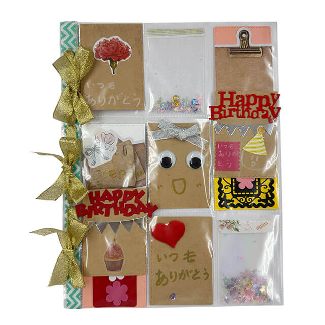 写真の保存の為のスクラップブッキングはもちろん、収納ボックスやウェルカムボードを作ったり、ピローボックスやアクセサリー台紙など、お菓子のラッピングも楽しめます♪