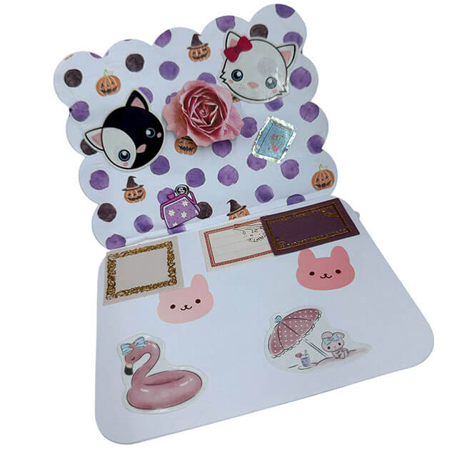 その道具で切り抜いたペーパーパーツとステッカーなどを組み合わせて様々な作品を作るアートです♪