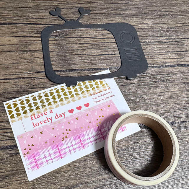 マステを貼って、テレビ画面部分を作ります。